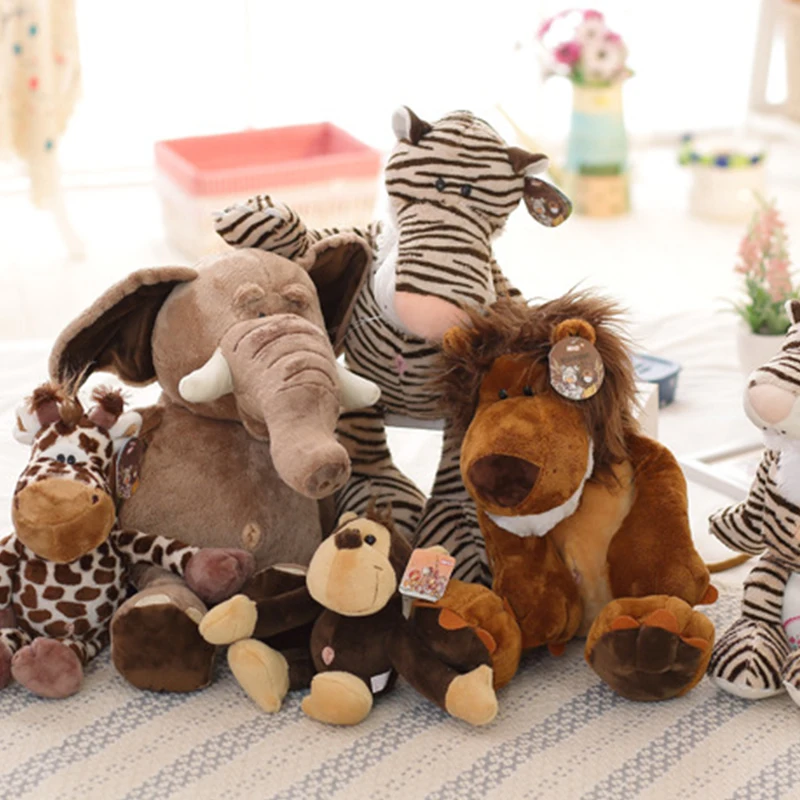 Animal Plush Soft Toy Jungle Safary Party Decor Toy Forest Stuffed Jungle Toy Child Gift Doll Lion Monkey Giraffe Elephant Tiger