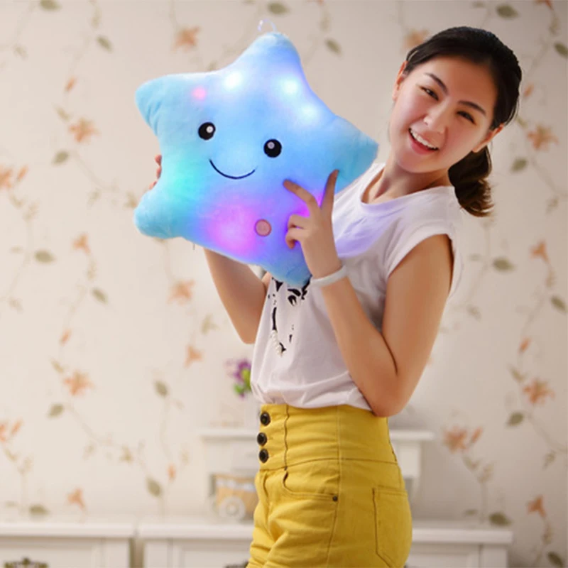 Discount 40x35cm Luminous pillow Christmas Toys, Led Light Pillow,plush Pillow, Colorful Stars Pentagram,kids Toys, Birthday Gift only $7.22