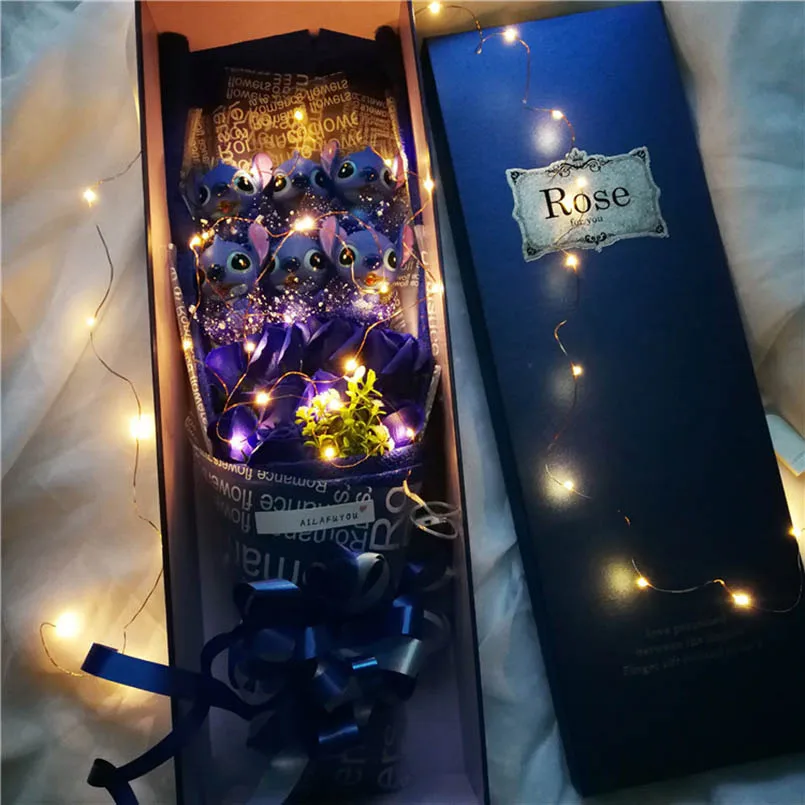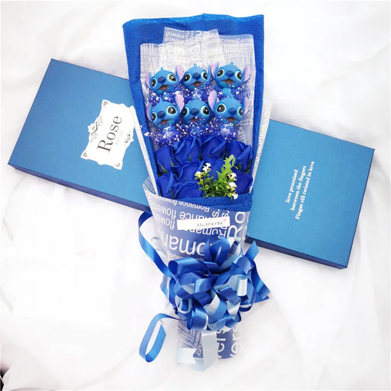 Soft Stitch Bouquet Plush Stuffed Animals Toys Artificial Kawaii Cartoon Fake Flowers Valentine's Day Gifts For Girlfriend
