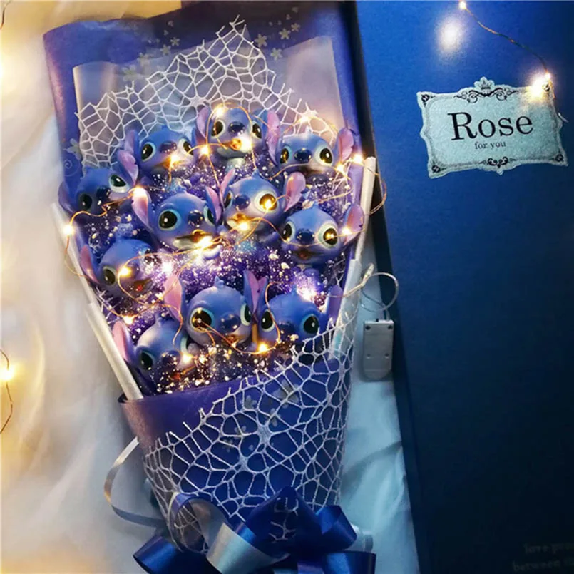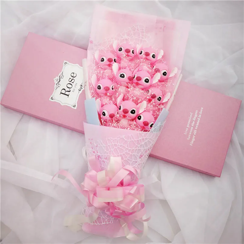 34% OFF!! Soft Stitch Bouquet Plush Stuffed Animals Toys Artificial Kawaii Cartoon Fake Flowers Valentine's Day Gifts For Girlfriend