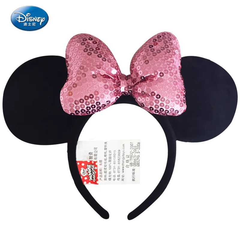 Disney Genuine Toys Minnie Mouse Headdress Plush Mickey Head Minnie Ears Girls Hair Bands Princess Head Hoop Kids birthday Gift