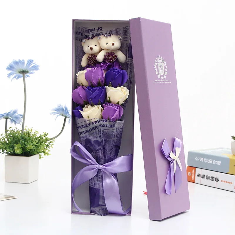 FREE SHIPPING Stitch Plush Toys Anime Bear Soft Stuffed Animal Dolls Kawaii Bouquets for Girls Women Valentine's Day Gift Present with Box only $14.20