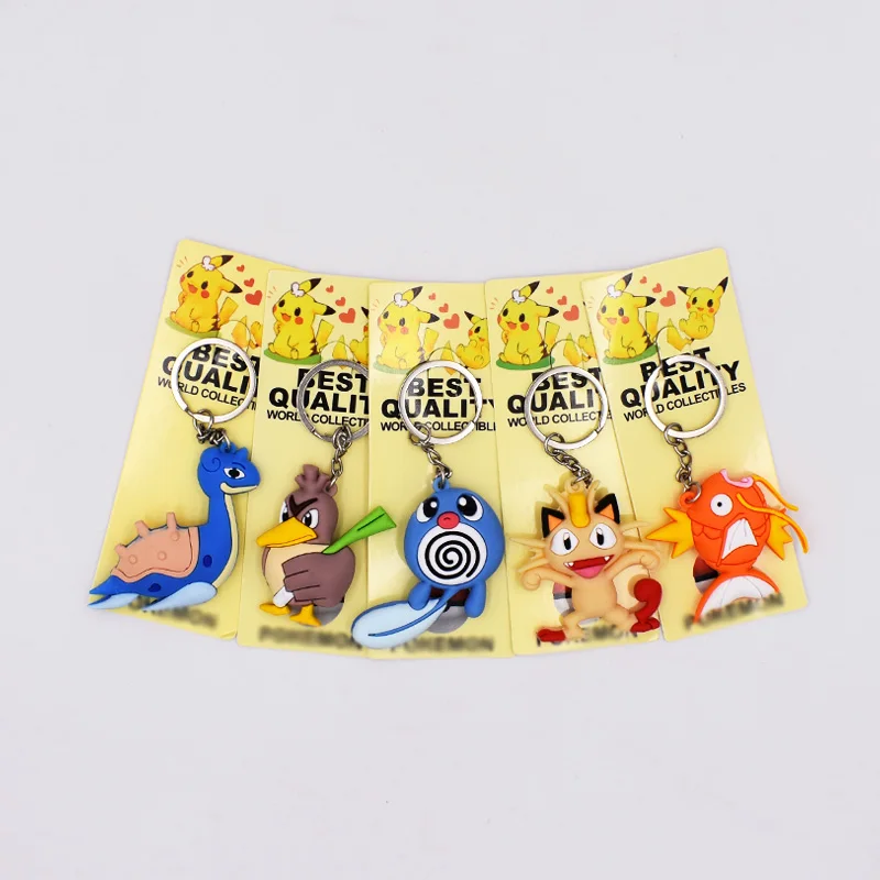 4-7cm 5 Style Pikachu Series Keychain Monsters Key Holder Go Key Ring Pendant 3D Mini Pendant Lapras Poliwag Magikarp Meowth