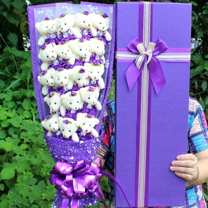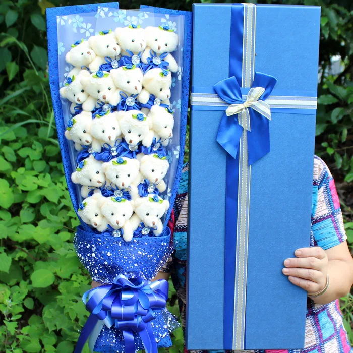 Discount Valentine's Day Gift 18 Bears Bouquet Cartoon Anime Dolls with Beautiful Gift Box for Graduation Birthday Girlfriend Kid